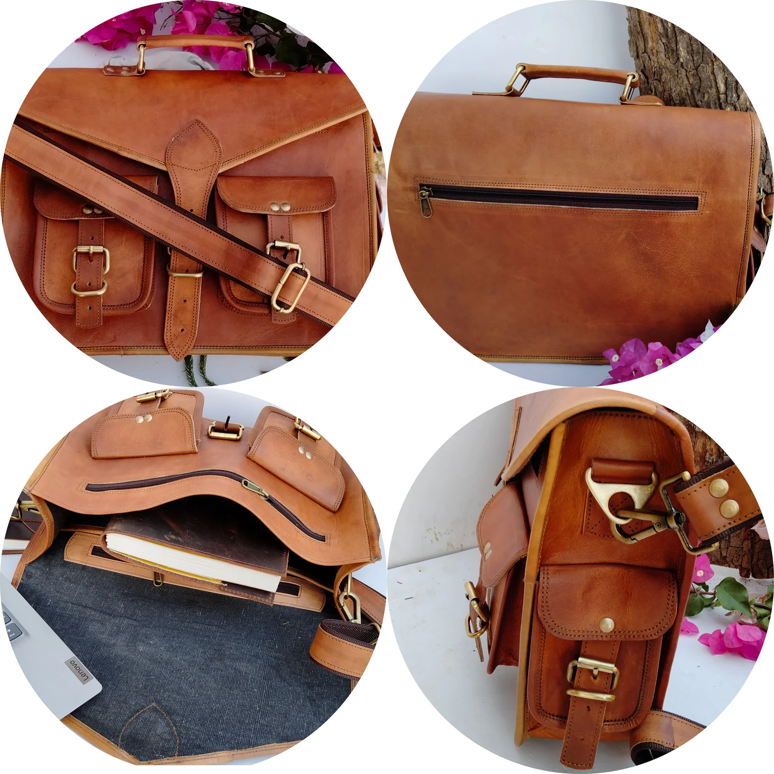 Craftshades – 16 Inch Handcrafted Briefcase Goat Leather Bag | 100% Genuine Leather