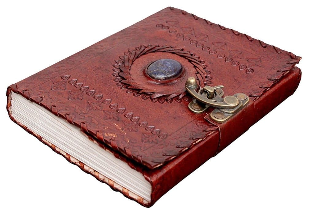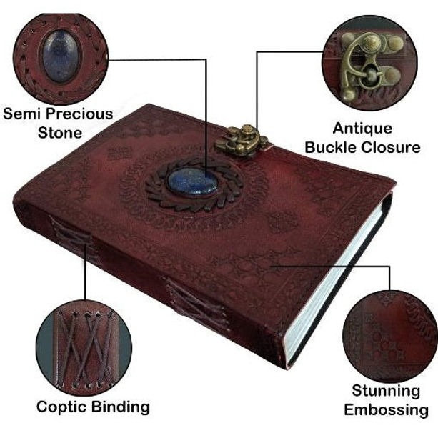 Craftshades – Metal Lock Single Stone Brown Embossed Design 7″5 Handcrafted Leather Journal/Diary 200 page | 100% Genuine Leather