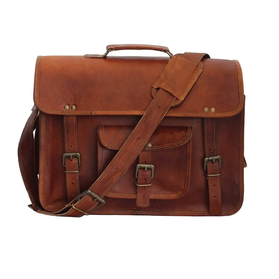 19 reviews for Craftshades – 13 Inch Single Pocket Double Strip Handcrafted Satchel Goat Leather Bag | 100% Genuine Leather