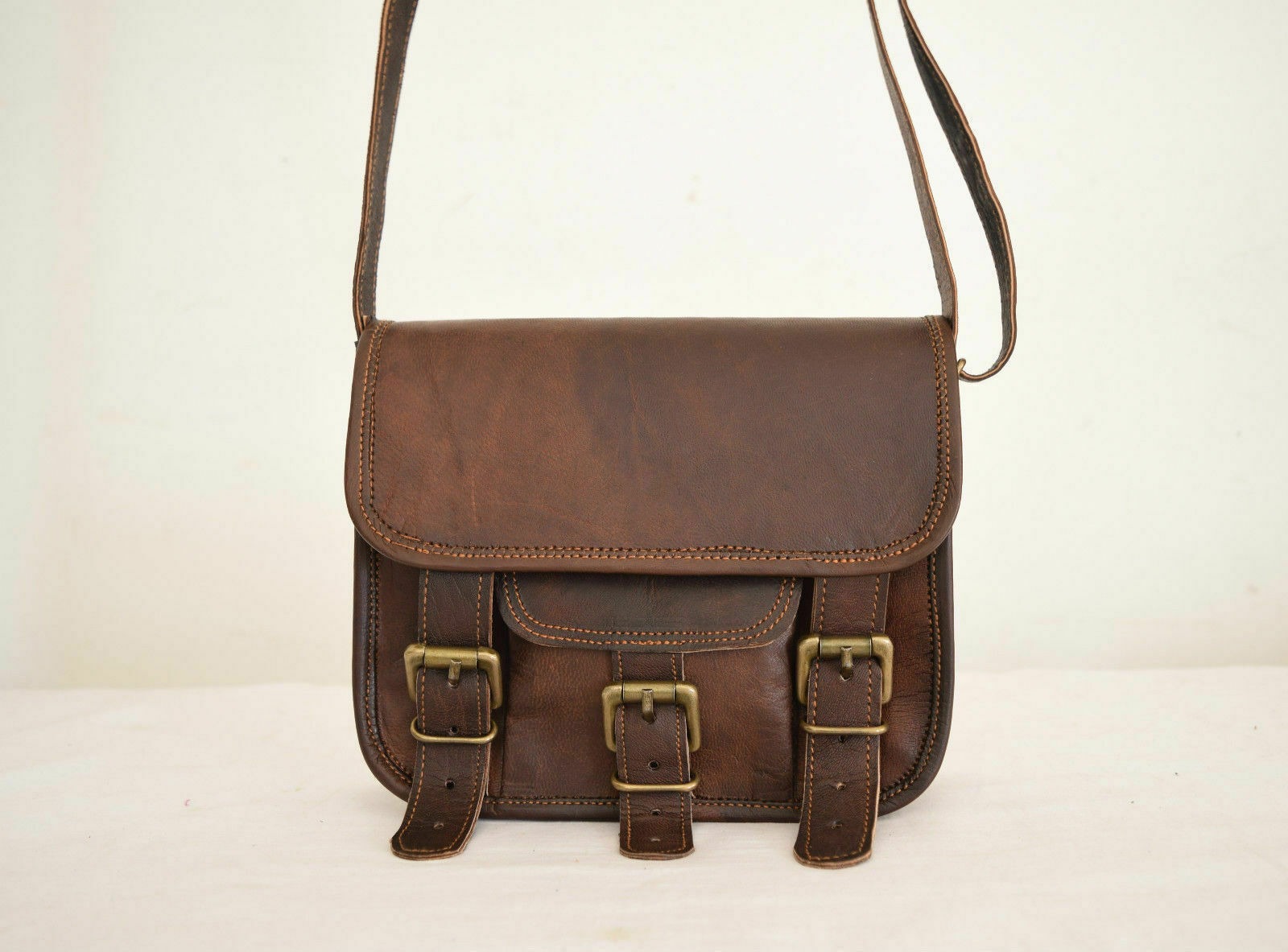 Craftshades – 9 Inch Full Flap Plain Handcrafted Small Goat Leather Sling Bag | 100% Genuine Leather