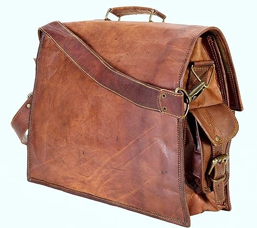 5 reviews for Craftshades – 15 Inch Double Pocket Handcrafted Vintage Messenger Goat Leather Bag For Men | 100% Genuine Leather