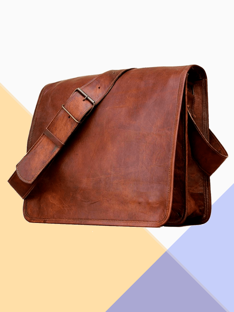 Craftshades – 15″11 Vintage Handcrafted Leather Laptop Bag without Pocket | 100% Genuine Leather