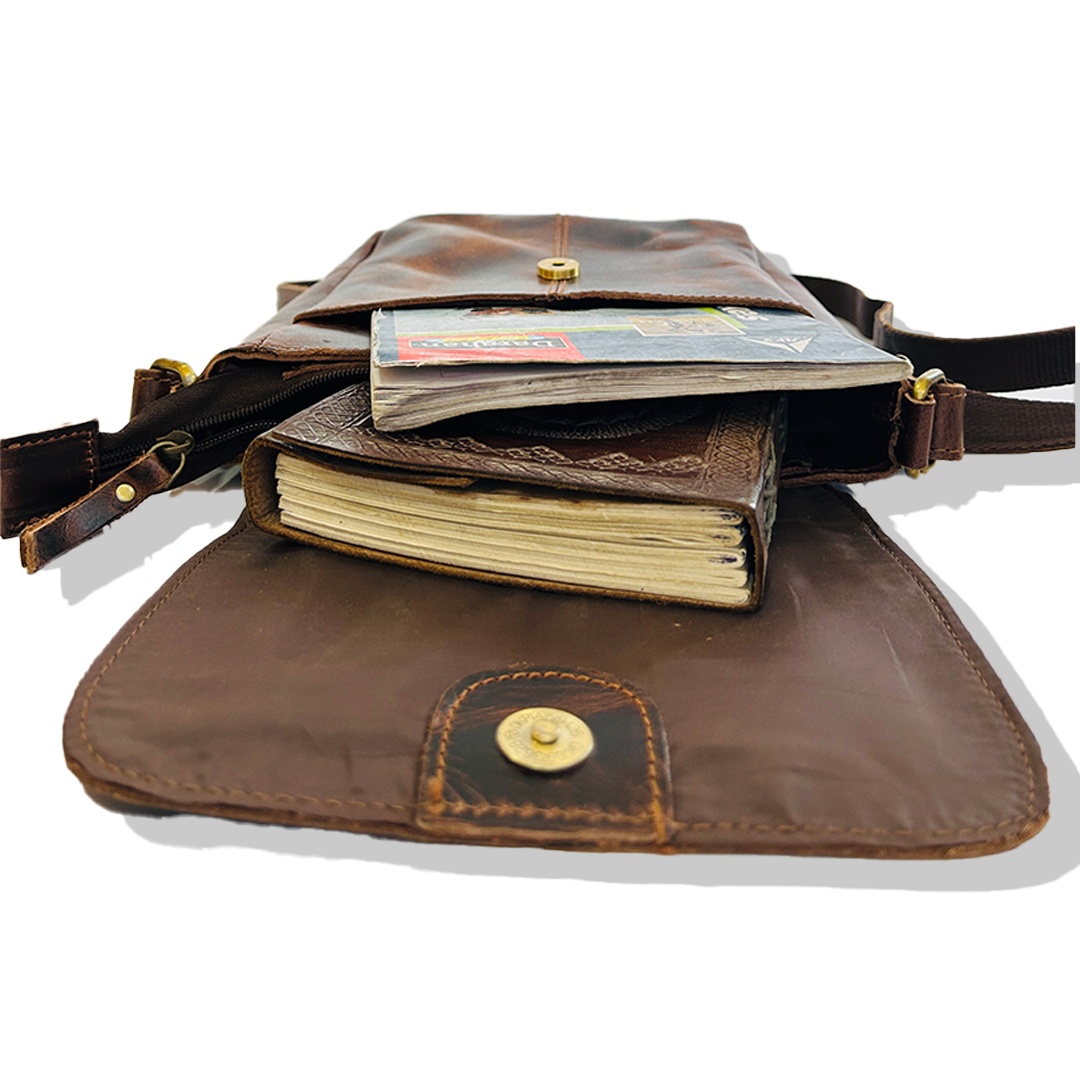 Craftshades -9 inches Brown Colour Buffalo Leather Sling Bag | 100% Genuine Leather