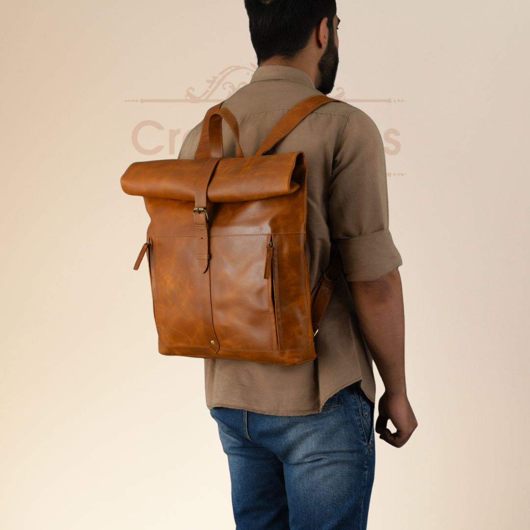 CraftShades uses Buff Tan Crunch leather, admired for its strength and distinctive texture. Over time, the leather develops a natural patina, giving the backpack a unique character with every journey. By using 100% genuine leather, CraftShades reinforces its commitment to authenticity and long-lasting quality.