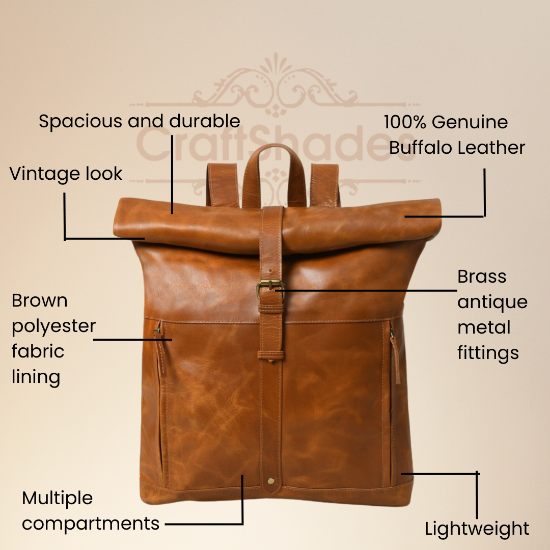 CraftShades 13×18 Inch Buffalo Leather Backpack – Rugged Elegance