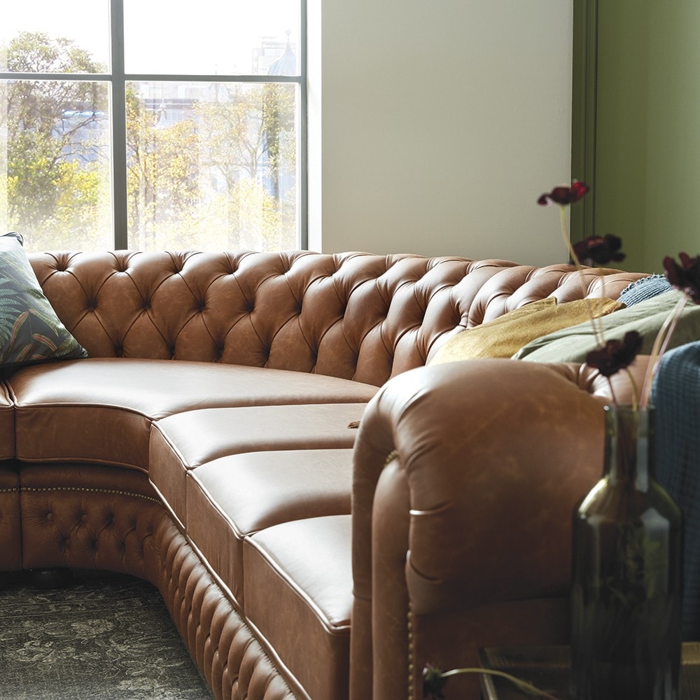 To make the most of this Chesterfield L-shaped sofa, consider these styling tips: