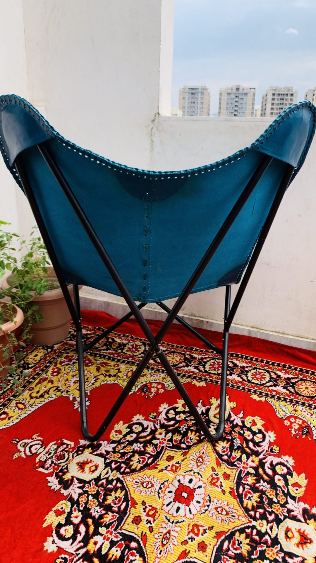 Handcrafted Leather Butterfly Chair, foldable chair Blue Colour Combo (pack of 2)