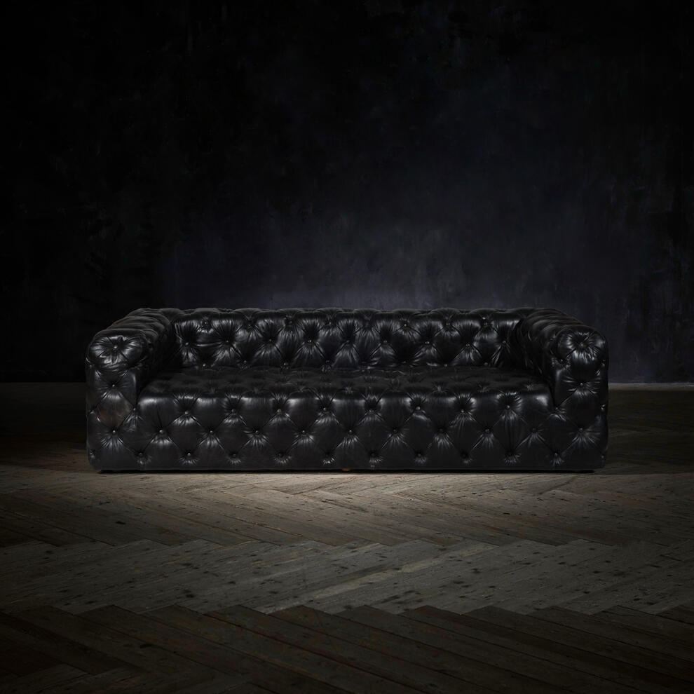 The deep, tufted design reflects the classic Chesterfield style while incorporating a sleeker, more contemporary silhouette. Experts carefully hand-stitch the tufting to enhance durability and prevent the leather from sagging or stretching. This meticulous craftsmanship underscores the dedication to quality and long-lasting appeal.