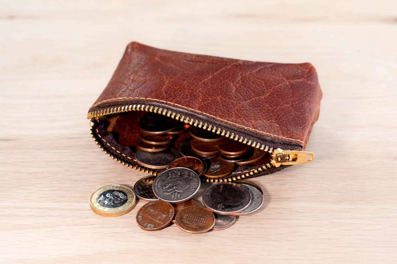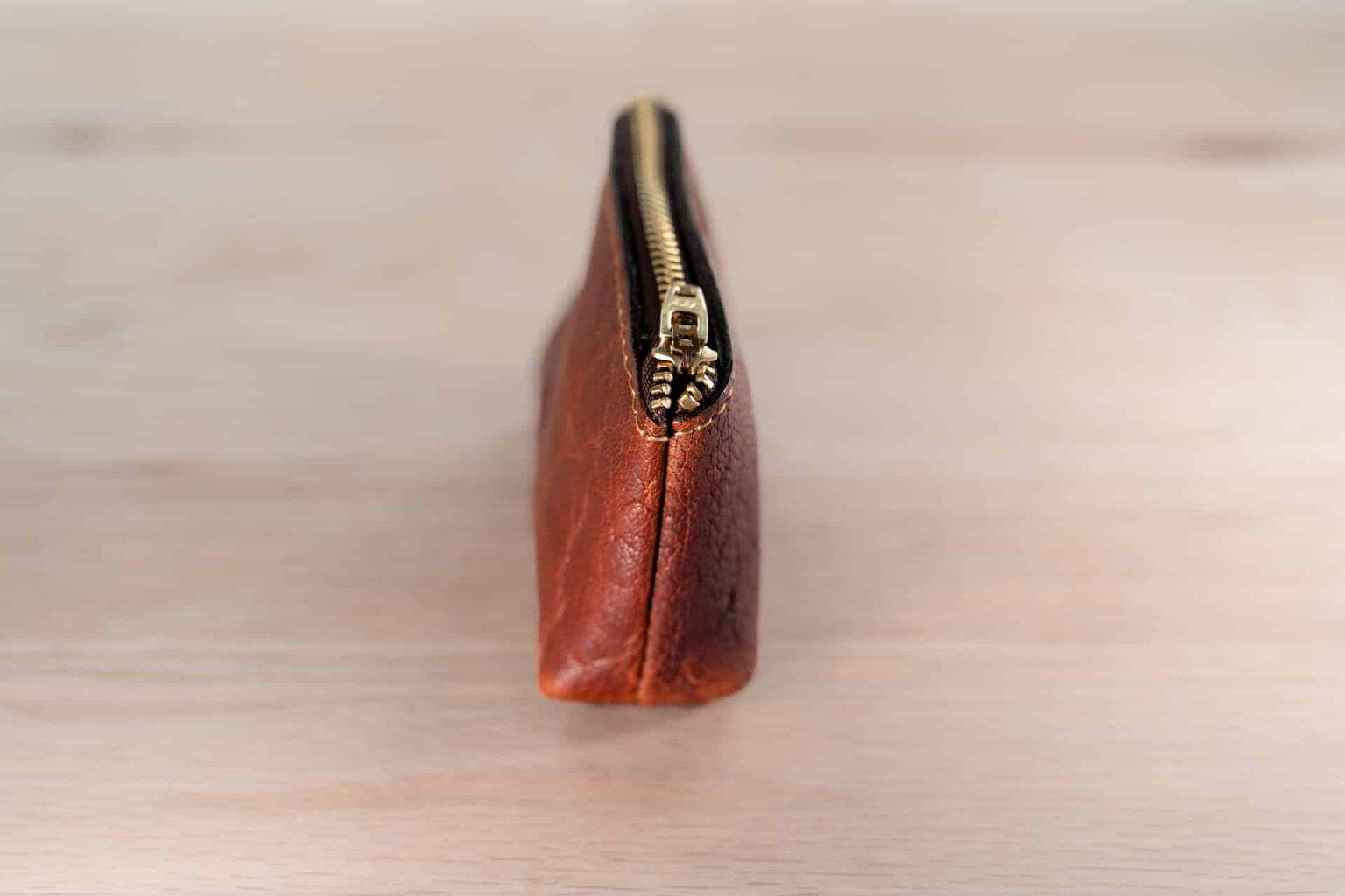 Genuine Leather Zippered Coin Purse with Gusseted Sides