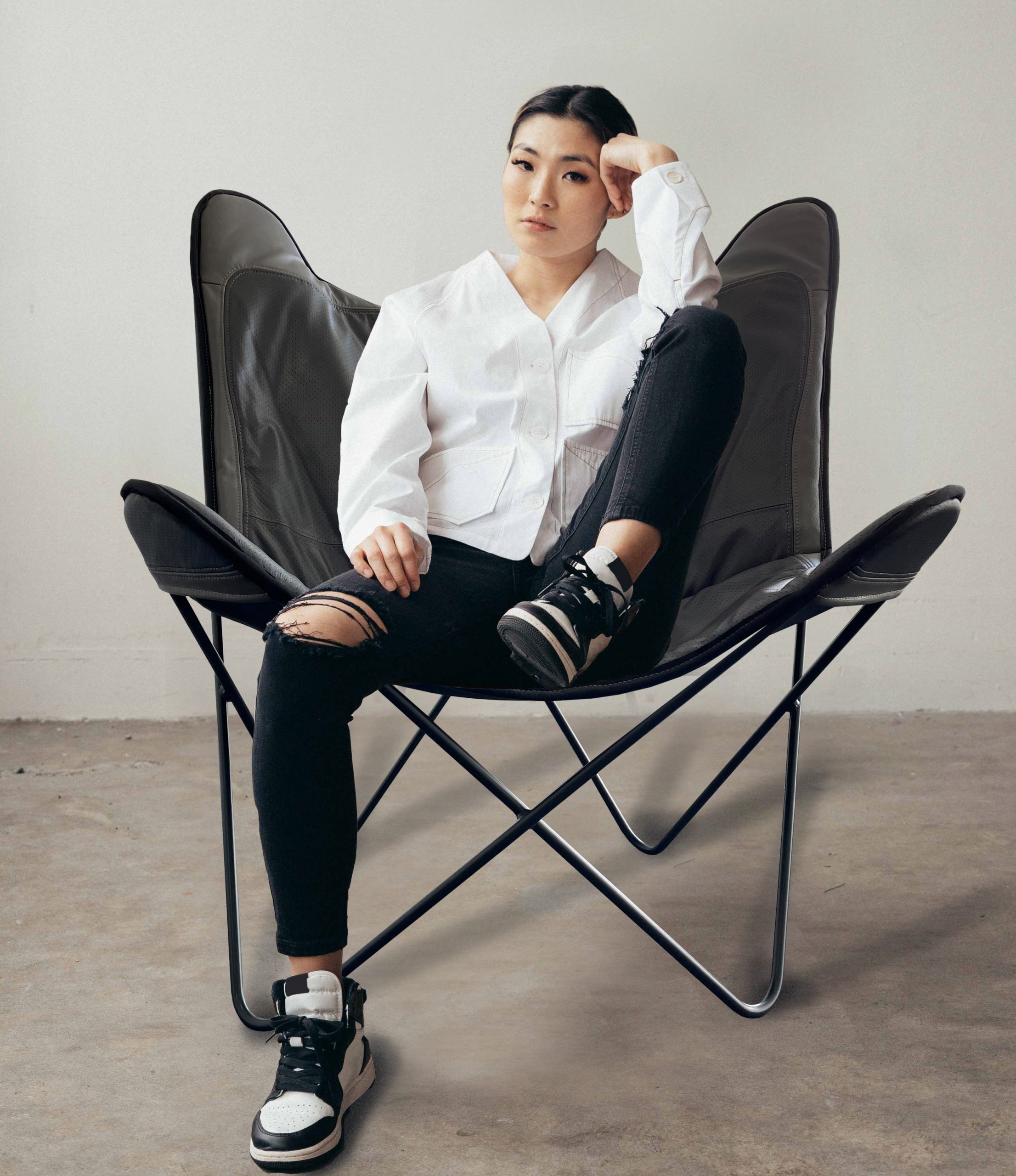 Butterfly Chair black chair Goat leather
