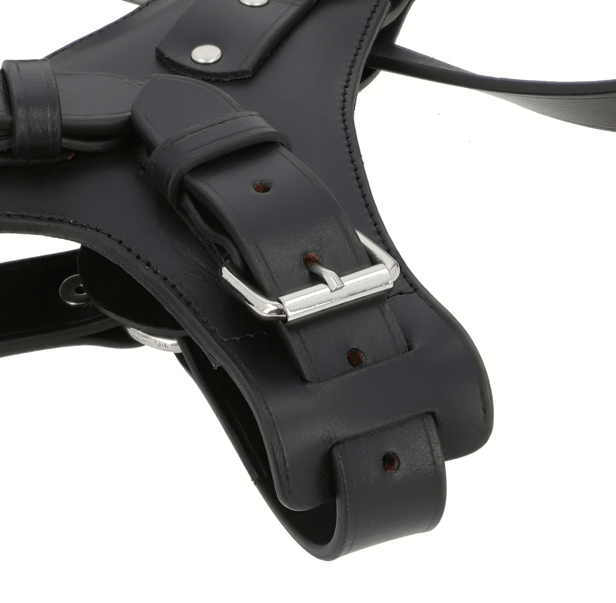 The chest-strap design of our premium black leather dog chest harness is more than just stylish—it’s functional. By evenly distributing weight across your dog’s chest, it reduces strain on the neck and shoulders, making it ideal for medium to large-sized dogs. This design is especially helpful for dogs in training, energetic pups, or breeds prone to pulling.